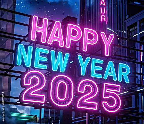 Happy New Year 2025 neon lettering.