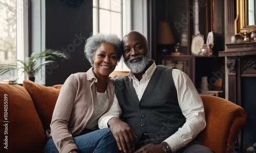 Happy Senior Couple Relaxing on Cozy Couch at Home