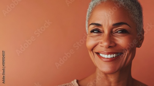 Happy senior woman, studio and beauty for skincare, makeup and smile with facial glow in portrait. Elderly model, black woman, and skin for wellness, health and self care by cosmetic background