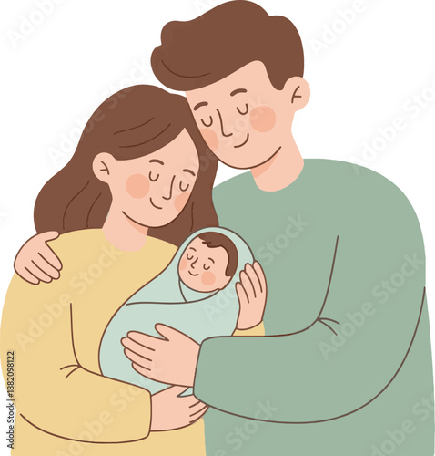 Happy Young Couple Holding Newborn Baby