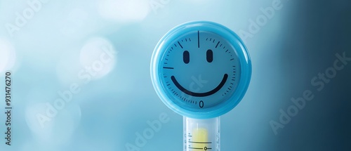 Health Check Alert - Thermometer Reading on Advertising Sign Wide Banner Design with Happy Face on Medical Background