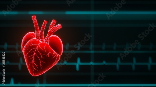 heart disease stroke prevention. Glowing heart graphic with heartbeat line background.