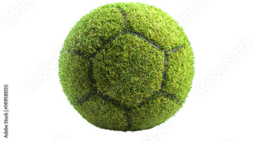 High-Quality Soccer Ball with Grass Texture on White Background for Sports Marketing Materials