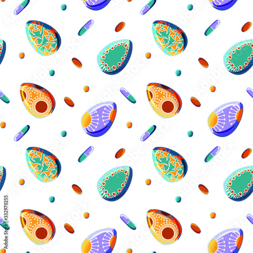 Holiday in quarantine. Happy easter eggs seamless pattern drawn with the pattern of caronovirus infection Coronavirus flu infection. Patterns of toxicity, tablets, capsules, bacteria. infection
