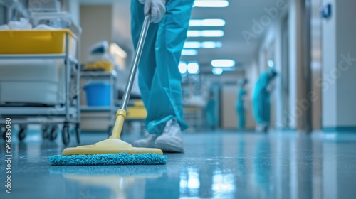 Hospital Cleaning Staff Cleaning Floor with a Mop