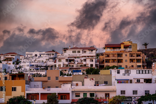 Hotels in Morro Jable at sunrise on Fuerteventura, Spain