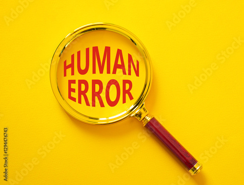 Human Error symbol. Magnifying glass with words Human Error. Beautiful yellow background. Business and Human Error concept. Copy space.