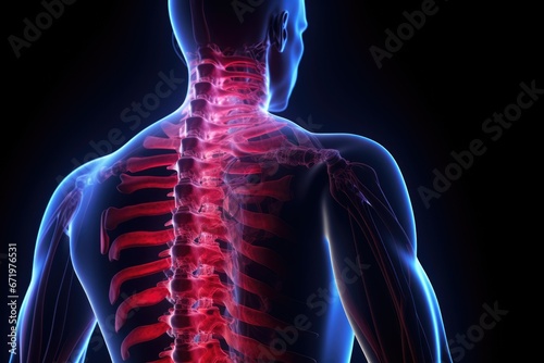 Human skeleton anatomy - part of the human body. 3D illustration, Male Hurt Backbone Vertebrae Pain, 3d, AI Generated