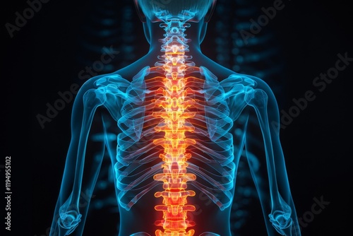 Human spine visualization with highlighted vertebrae showcasing the structure and alignment of the back in a medical study