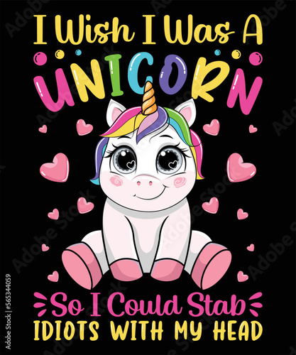 I Wish I was A Unicorn So I Could Stab Idiots With My Head Graphic Vector Tshirt Illustration