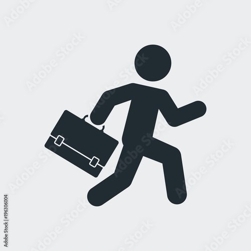 Icono plano corredor con maletin en fondo gris