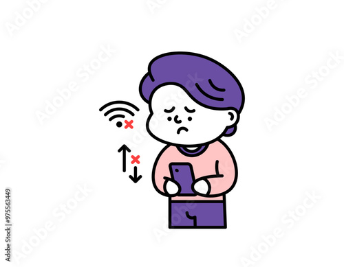 illustration of a sad man because he can't access the internet. wifi network or internet network can't be used. internet error. technology problems. cute character design. elements