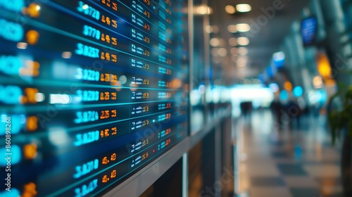 illustration of flight schedules at international airports, modern, names of destination countries, names of arriving planes, names of cities, names of planes