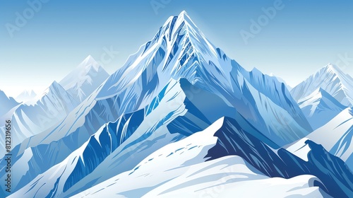 Illustration Of The Majestic Snowcapped Mountain With Sharp Peaks And Deep Blue Sky
