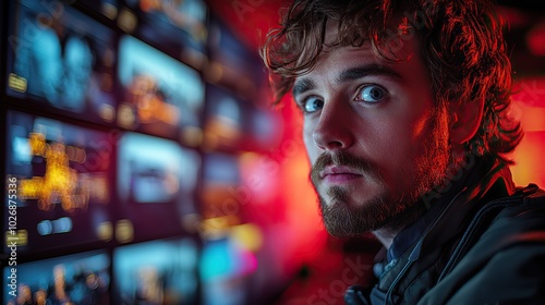 In the system control room, a technical operator monitors multiple displays, ensuring information security and operational efficiency.