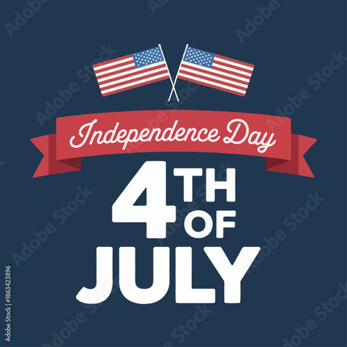 Independence Day July illustration featuring crossed American flags patriotic typography stars stripes festive USA holiday celebration design.