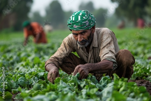 Indian farmer harvesting crop in field, agriculture and farming in india