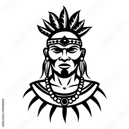 Indigenous Warrior Head with Feathered Headdress Tribal Art for Tattoo and Design Inspiration