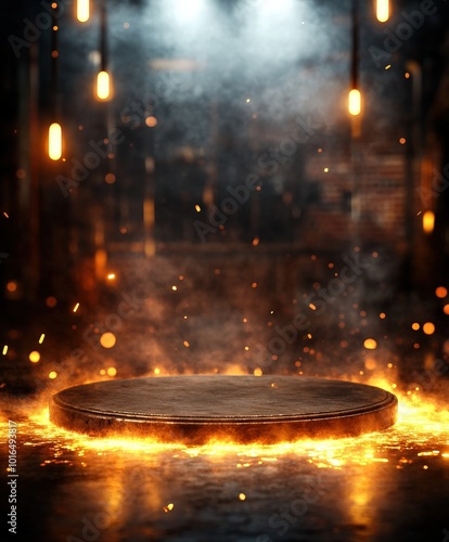 Industrial Metal Platform with Fire and Smoke.