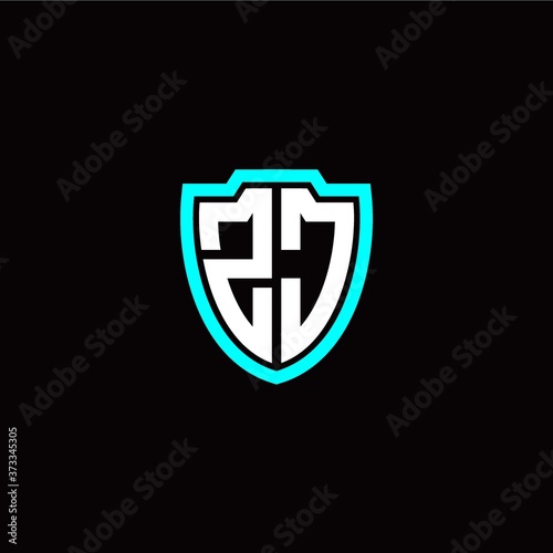 Initial Z J letter with shield modern style logo template vector