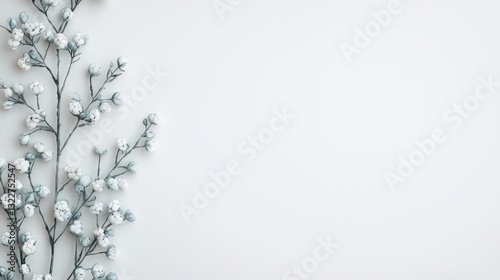 Ink illustration abstract background idea. Delicate floral branch against a minimalist white background for serene decor.