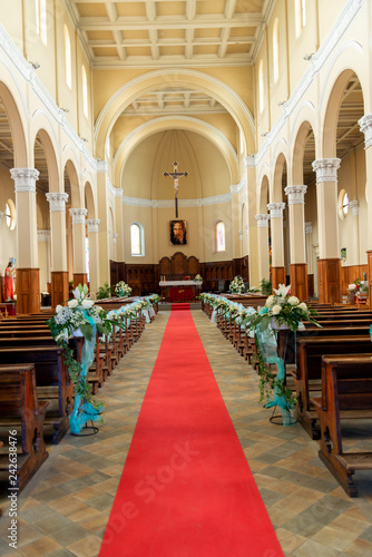 interno della chiesa con addobbi floreali per il giorno del matrimonio