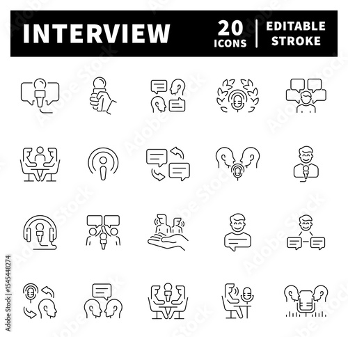 Interview vector icons in line style. Thin line icons related to interview