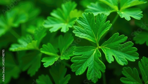 Intricate parsley leaf details, vibrant green hues , spring, line, branch