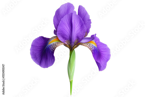 Iris purple concept. Vibrant purple iris showcasing intricate petal details and lush green stem.