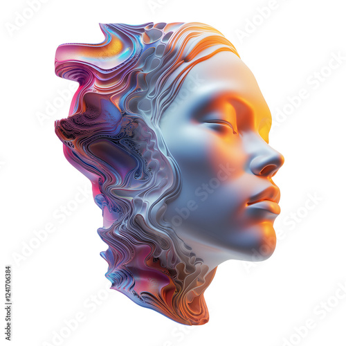 Isolated creative abstract head statue on transparent background. Modern design. Art collage. Minimal art poster