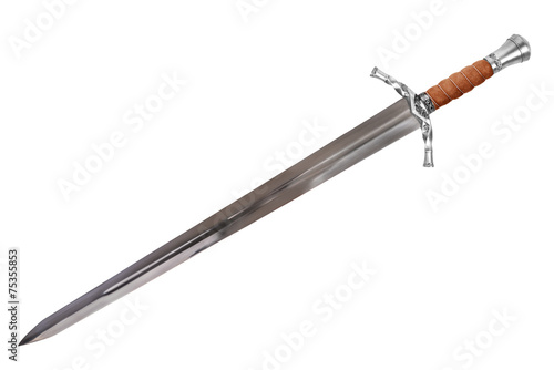 Isolated medieval sword with a polished stainless steel blade and classic hilt design on a white background. Ideal for historical, fantasy, and cosplay themes, showcasing elegance and craftsmanship.