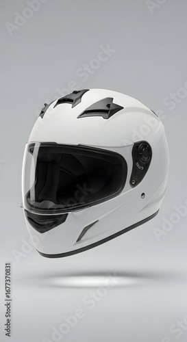Isolated White Motorcycle Helmet with Clear Visor on Light Background