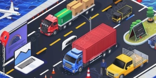 Isometric Global Logistics Network Highlighting Fast Delivery, Online Shopping, Internet Payments, and Remittance Protection: AI-Generated High-Resolution Wallpaper