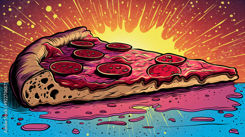 It is a pizza ad designed like a comic book cover. It's a pop art pizza ad. Pizza advertisement banner with copy space.