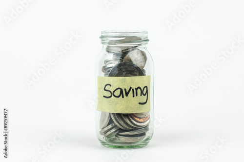Jar for savings full of coins.