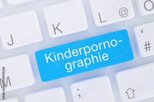 Kinderpornographie. Computer Tastatur von oben zeigt Taste mit Wort hervorgehoben. Software, Internet, Programm
