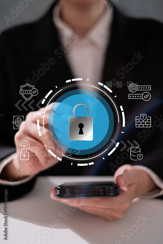 Laptop internet user padlock shield connection computer cybersecurity data information technology network online digital information system protection password concept
