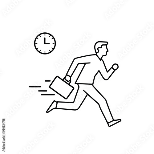 Late for Work Line Icon - Businessman Running with Briefcase and Clock