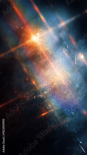 Lens Flare Dust Scratches Overlay – Blue Distressed Screen Rainbow Glow Defect Texture
