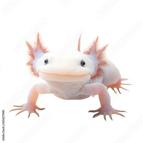 Leucistic Axolotl Posing on White Background