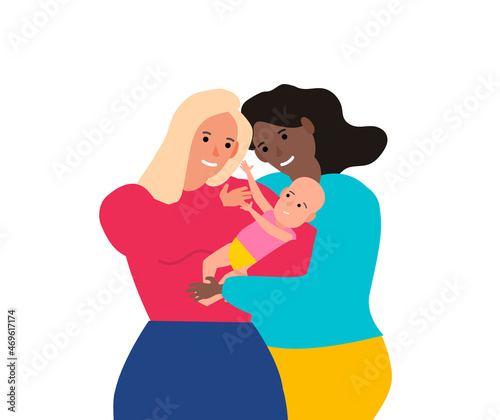 lgbt lesbian women couple with baby happy parents vector illustration