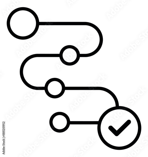 Line art illustration of a process timeline depicting steps and successful completion for project management