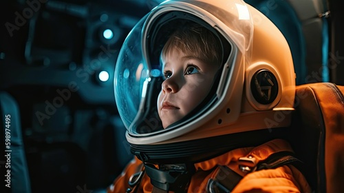 Little Explorer: Child Dressed as an Astronaut Ready for Adventure by Generative AI
