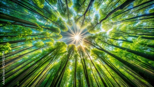 Long Exposure: Canopy of Lush Green Trees, Sky View from Below