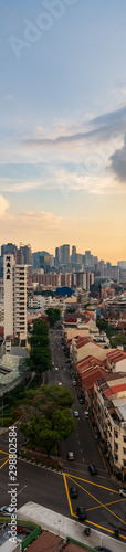 Long vertical image of Singapore Cityscape at sunset time