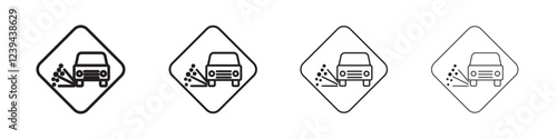 Loose chippings roadworks sign icon Outline sign symbol set