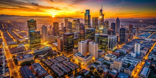 Los Angeles Downtown Skyline Aerial View at Dusk - Golden Hour Cityscape