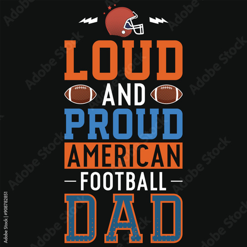 Loud and proud American football dad rugby playing typography tshirt design