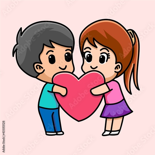 Lover couple hug heart together cartoon illustration