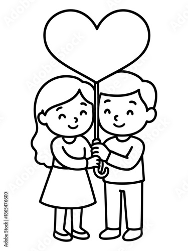 Love's Shield: Two figures united under a heart-shaped symbol, a tender portrayal of affection and unity, a visual metaphor for the bond.